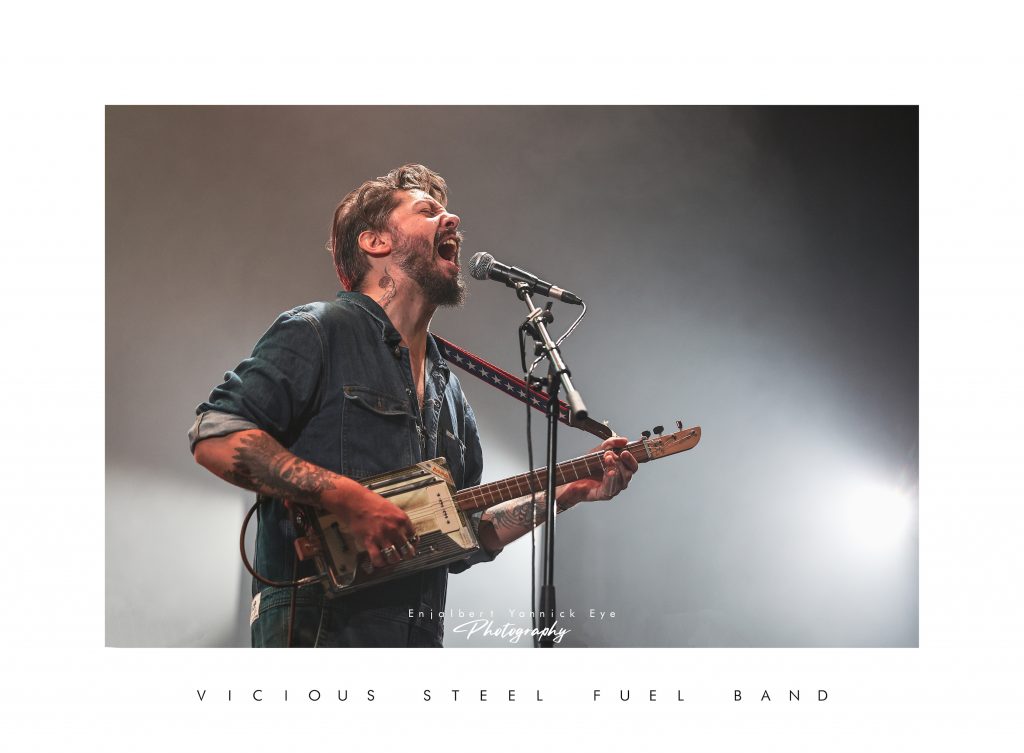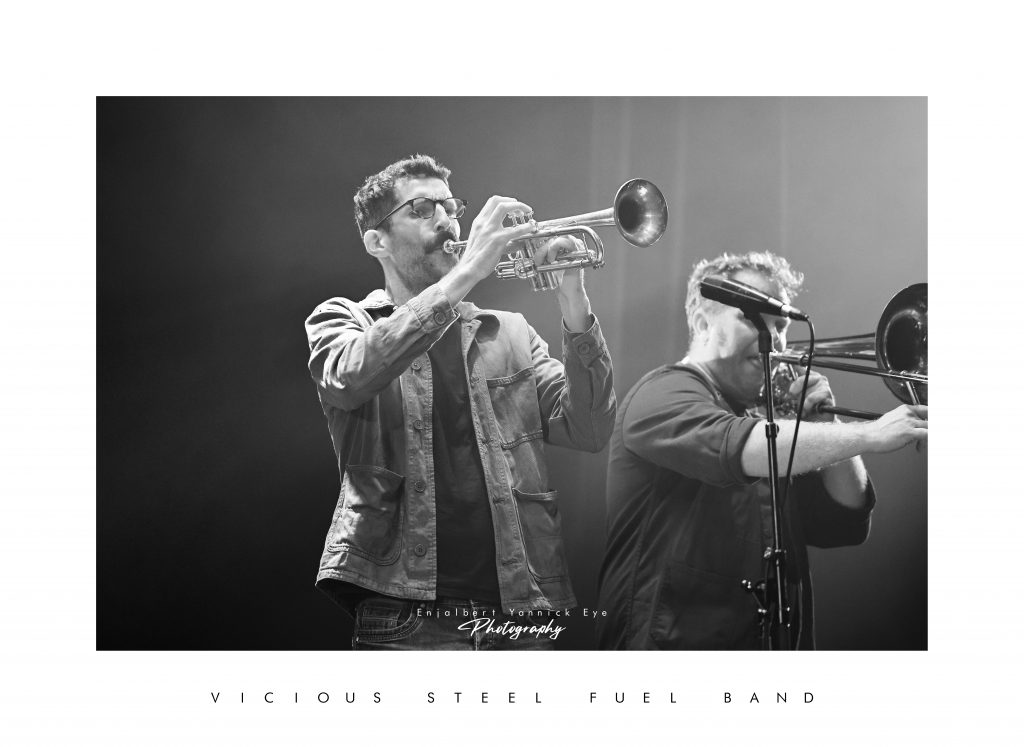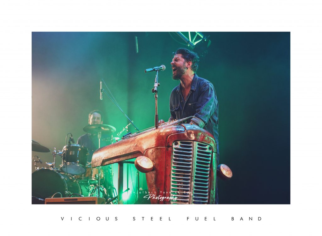Vicious Steel alias Cyril Maguy est habitué aux petites formations comme le onemanband ou le duo batterie Guitare , combo qui revient en force ces dernières années. A contrepied , Cyril forme un FUEL band pour un surplus d’énergie avec une basse, un harmo et une section cuivre Trombone Trompette. Une envie d’explorer des arrangements nouveaux était présente depuis quelques temps . Vicious Steel Fuel Band carbure au Hill country , au blues rock et à l’americana avec des thèmes et grandes envolées de cuivres rappelant la musique de Copland ou de Moriconne qui sent bon le désert de l’ouest Américain . Riffs hypnotiques et entêtants , des mélodies qui restent en tête à siffler toute la journée, un tracteur sur scène , Vicious Steel Fuel Band est un moteur vrombissant.